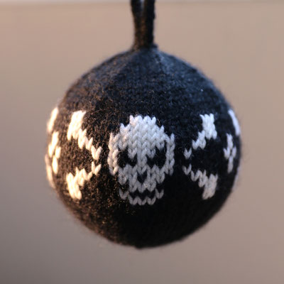 Made for one of my dearest friends who saw my “It Takes Balls to Knit” and said he’d fancy one with a skull