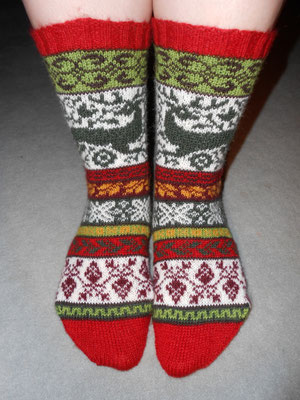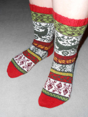 One of my co-workers saw me knitting these during my break and said in an astonished voice: “There are animals on your socks.”
