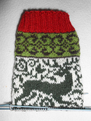 For the foot part I decreased the stitches until I got to 80 again and had to omit some parts of the original pattern (small feet…).