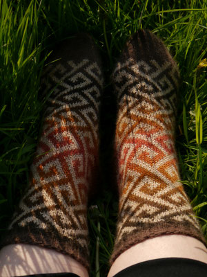Skipped the stripes on the sides of the socks and tried my first afterthought heel.
