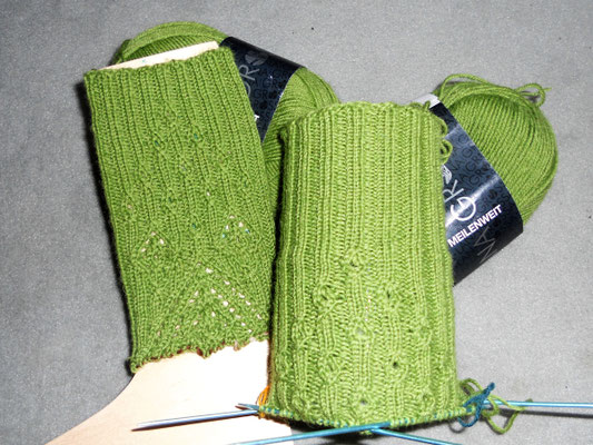 The leg feels a bit too tight so if I’m doing these socks again I will use bigger needles until I get to the heel.