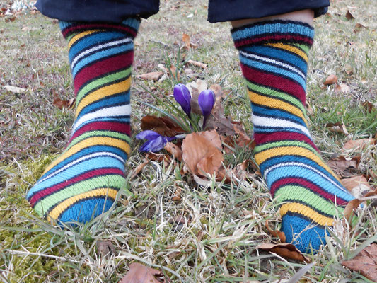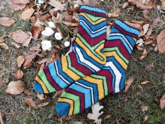 I used Techknitter’s overcast method to weave in the ends while knitting the socks. In the end I just had to clip the tails.