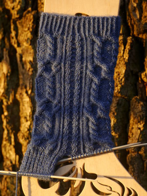 3 leg pattern repeats; decreased to 68 sts for the foot